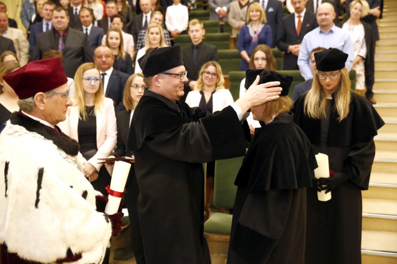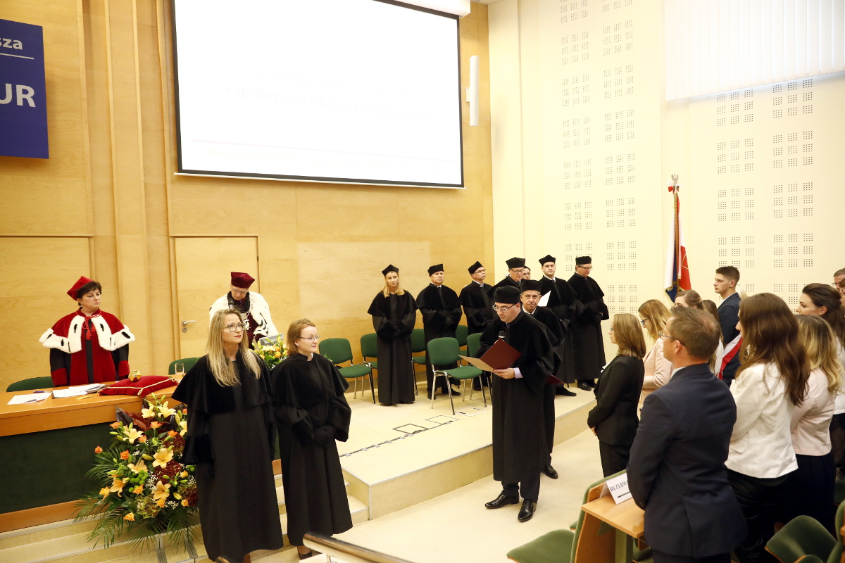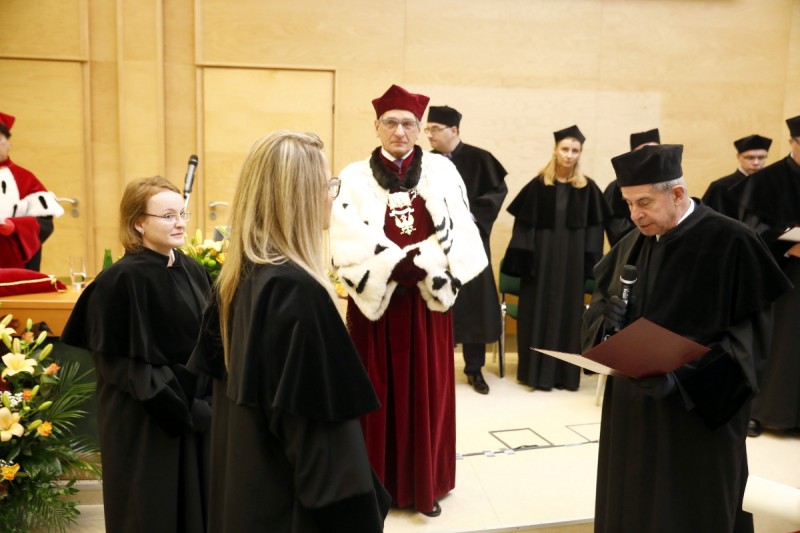 Uroczystości towarzyszyła także promocja osób, które w ubiegłym roku uzyskały stopień doktora nauk prawnych. Przysięgę doktorską złożyły dr Bożena Serwin-Pinda, która przygotowała rozprawę doktorską pod opieką prof. Ewy Skrzydło-Tefelskiej oraz dr Małgorzata Skawińska, której promotorem był prof. Andrzej Zoll.