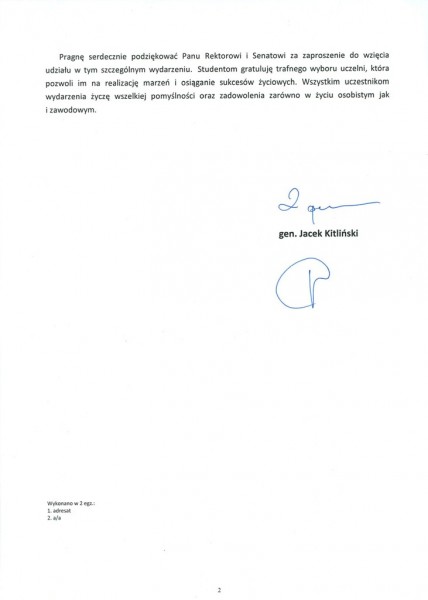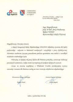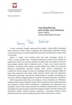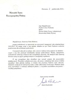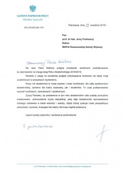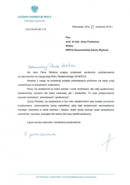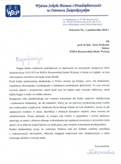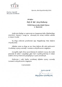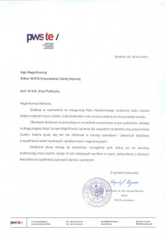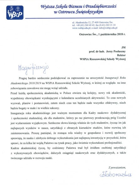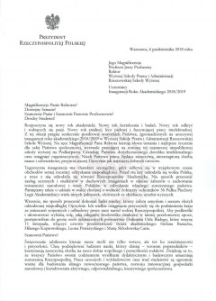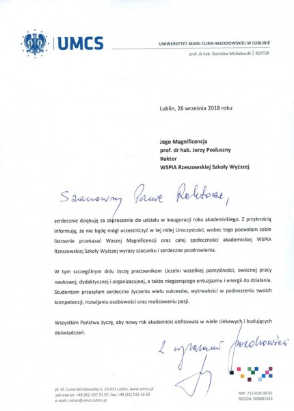 Listy gratulacyjne z okazji Inauguracji roku akademickiego w WSPiA