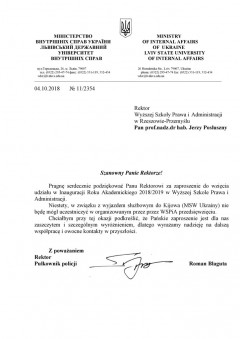 Pan płk. policji, dr nauk prawnych, docent Roman Błaguta – Rektor Lwowskiego Państwowego Uniwersytetu Spraw Wewnętrznych;