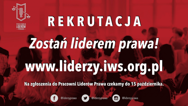 Program edukacyjny „Pracownia Liderów Prawa”, realizowanego jest przez Instytut Wymiaru Sprawiedliwości. Jest to nowoczesna forma kształcenia przyszłych prawniczych elit, które dzięki niej mogą czerpać z wiedzy i doświadczenia aktualnych liderów prawa, polityki oraz gospodarki. Wśród nich znajdą Państwo między innymi wykładowców najbardziej renomowanych polskich uczelni, jak również prawników pracujących dla najlepszych kancelarii oraz menedżerów najwyższego szczebla w największych polskich przedsiębiorstwach. „Pracownie Liderów Prawa” wspomagają także wykładowcy z najlepszych uczelni świata, w tym między innymi z Uniwersytetu Harvarda, MIT, IESE Business School, czy też z SRI International.