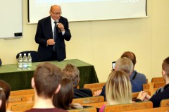 Podczas spotkania Prezydent Tadeusz Ferenc zaprezentował swoją wizję dalszego rozwoju Rzeszowa i propozycje rozwiązań poprawiających jakość życia w mieście. Gość WSPiA opowiadał studentom i pracownikom o inwestycjach, jakie w ostatnich latach udało się zrealizować w Rzeszowie i które planowane są w przyszłości planach. – Rzeszów stawia na młodych i to w Was jest przyszłość tego miasta – powiedział podczas spotkania Tadeusz Ferenc. – To dla Was powstają nowe osiedla, strefy ekonomiczne i miejsca rozrywki. Chce, żeby studenci, którzy przyjeżdżają do Rzeszowa z różnych stron, osiedlali się tu na stałe i rozwijali to miasto. Takie działania przynoszą efekty – mówił Prezydent Rzeszowa.