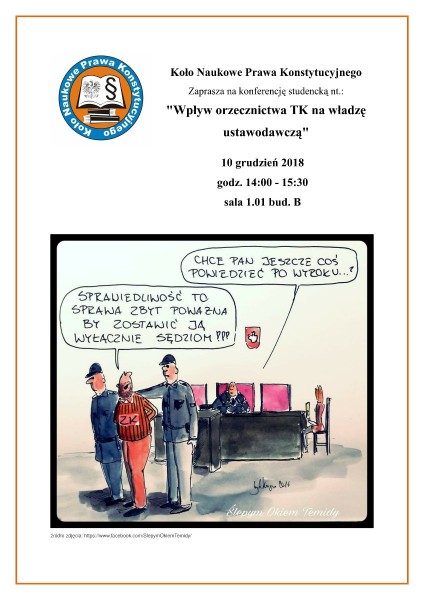 Organizatorem konferencji pt. „Wpływ orzecznictwa Trybunału Konstytucyjnego na władzę ustawodawczą” jest działające w WSPiA Koło Naukowe Prawa Konstytucyjnego. W dyskusji mogą uczestniczyć wszyscy studenci WSPiA zainteresowani tematyką spotkania.