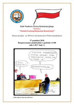 Konkurs na „Grażynę/Janusza Konstytucji” organizowany jest przez Koło Naukowe Prawa Konstytucyjnego w ramach obchodów 100-lecia odzyskania przez Polskę Niepodległości.