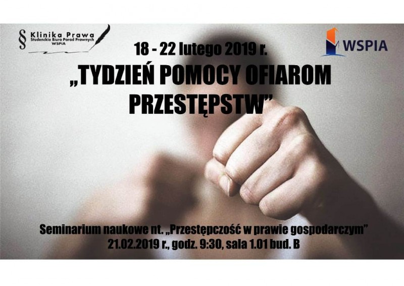 Studencka konferencja na temat przestępczości w prawie gospodarczym organizowana jest z okazji trwającego Tygodnia Pomocy Ofiarom Przestępstwem. Inicjatywa powstała w Ministerstwie Sprawiedliwości w 2000 r. Celem akcji jest zwrócenie szczególnej uwagi na potrzeby i prawa osób pokrzywdzonych przestępstwem. Idea ta związana jest z obchodzonym w dniu 22 lutego Międzynarodowym Dniem Ofiar Przestępstw.