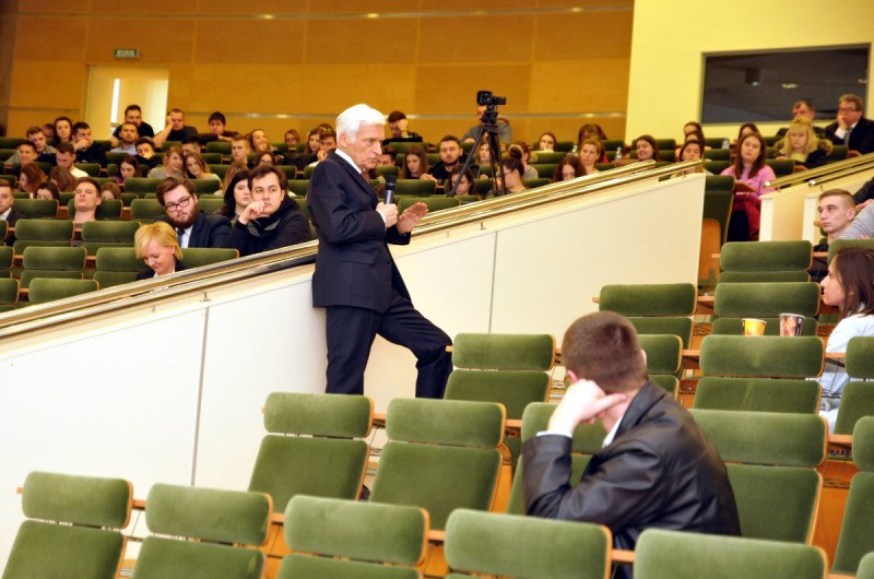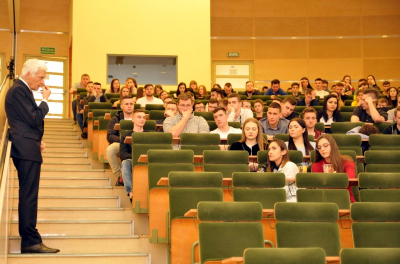 – Dziękuję za zaproszenie i bardzo się cieszę, że mogę dziś spotkać się ze studentami jednej z najlepszych rzeszowskich uczelni kształcących humanistów. WSPiA jest znana w całym kraju, a studia szczególnie prawnicze to absolutna czołówka w Polsce – zaznaczył na początku wykładu prof. Jerzy Buzek.