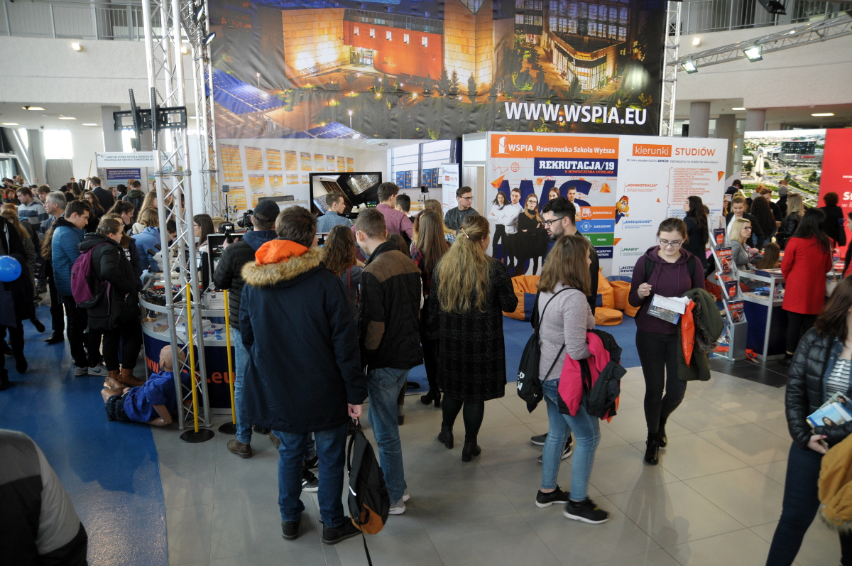 Stoisko WSPiA Rzeszowskiej Szkoły Wyższej odwiedziło blisko 3000 maturzystów. – Czekało na nich wiele atrakcji. Na naszym stoisku prezentowane było wyposażenie Podkarpackiego Centrum Kryminalistyki, Kryminologii i Medycyny Sądowej. Można było przymierzyć narko i alko gogle oraz zobaczyć jak pobierane są odbitki palców i w jaki sposób specjaliści zbierają ślady na miejscu przestępstwa. Każdy maturzysta mógł zabrać ze sobą pamiątkową kartę daktyloskopijną – wylicza Przemysław Pawlak, Rzecznik Prasowy WSPiA.