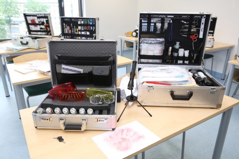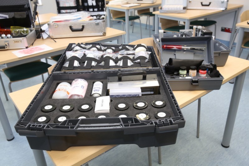 To walizy do zabezpieczania m.in. śladów biologicznych (np. krwi, włosów, wydzielin organizmu), użytych przez sprawców narzędzi (np. łomy, siekiery), śladów zapachowych, czy też śladów chodu oraz poruszania się różnego rodzaju pojazdów. Są również oświetlacze kryminalistyczne, lampy UV i zestawy narzędzi niezbędnych do profesjonalnego przeprowadzenia oględzin, eksperymentu procesowego i wizji lokalnej. Nie brakuje zestawów oględzinowych, a także parawanów kryminalistycznych pozwalających zabezpieczyć miejsce, w którym znajdują się zwłoki.