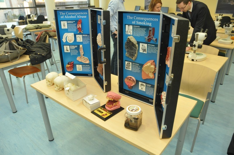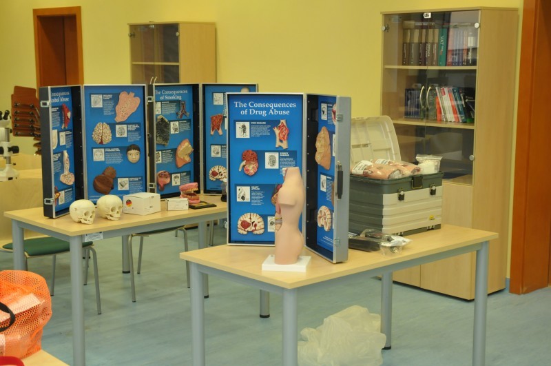 Nauka na profesjonalnych modelach i fantomach Uczelnia kupiła także zestawy pokazujące umięśnienie człowieka i budowę ciała. Widać dokładnie poszczególne elementy, jak choćby naczynia krwionośne. Są także fantomy do nauki udzielania pierwszej pomocy przedmedycznej i prawidłowej resuscytacji. Wszystko po to, by przygotować przyszłych specjalistów z zakresu bezpieczeństwa, np. policjantów do udzielenia pierwszej pomocy. Pracownia ma też fantomy i modele narządów wewnętrznych, np. śledziony i wątroby człowieka uzależnionego od alkoholu albo środków odurzających.