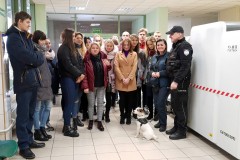 W drugiej części zajęć, która odbyła się w Budynku Kontroli Szczegółowej, studenci obserwowali, jak pracuje pies „Lucy” szkolony do wykrywania wyrobów tytoniowych. Zobaczyli m.in. jak pies znalazł przemycane papierosy, które ukryte były w ściance bocznej samochodu dostawczego BUS. Mogli także przy pomocy wideoendoskopu dokonać kontroli drzwi, ścianek bocznych oraz zbiornika paliwa kontrolowanego auta. Ostatnim punktem zajęć była wizyta na przejściu pieszym, gdzie studenci mogli uczestniczyć w prześwietlaniu bagaży urządzeniem Heiman (RTG).