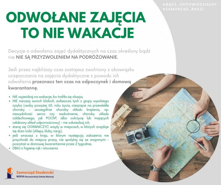 Decyzje o odwołaniu zajęć dydaktycznych na czas określony bądź nie NIE SĄ PRZYZWOLENIEM NA PODRÓŻOWANIE.