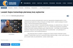 Dr Leszek Gajos we wtorek 30 czerwca 2020 r. był gościem porannej audycji „Kalejdoskop” w Polskim Radiu Rzeszów. Tematem dyskusji było podsumowanie i ocena I tury wyborów prezydenckich w Polsce. W rozmowie dr Leszek Gajos zwracała uwagę, że pierwsza tura może być zapowiedzią zaangażowania w życie polityczne tych wyborców, którzy do tej pory od niego stronili.