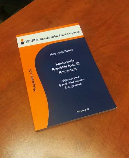 Nieprzypadkowo wspominamy dzisiaj o Islandii, albowiem niebawem ukaże się „Komentarz do Konstytucji Republiki Islandii”. Jego autorką jest dr Małgorzata Babula, konstytucjonalista z WSPiA Rzeszowskiej Szkoły Wyższej. Z jej publikacji naukowej, będzie można poznać wiele istotnych informacjach o charakterze prawno ustrojowym dotyczącym Islandii.