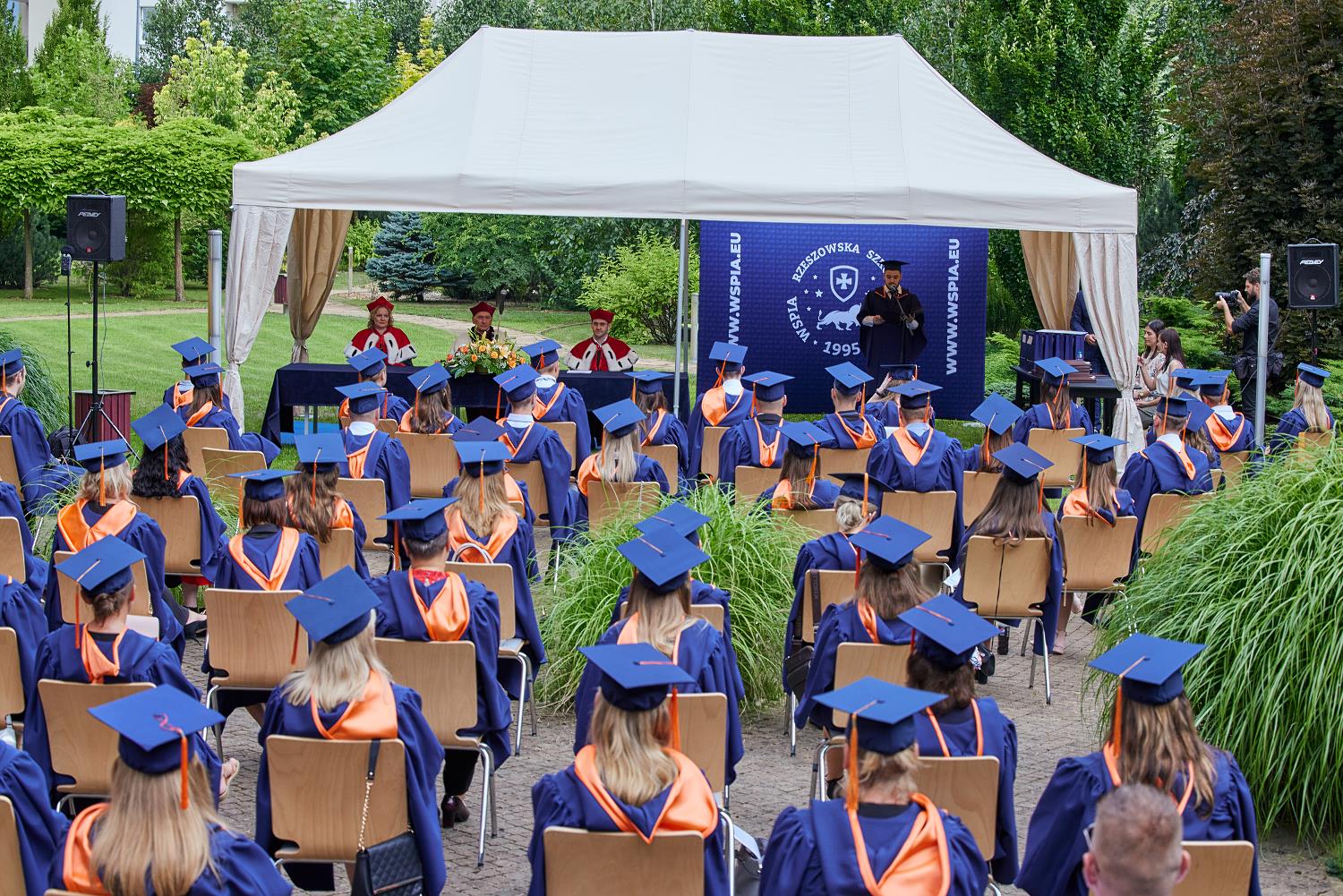 Blisko 100 tegorocznych absolwentów WSPiA Rzeszowskiej Szkoły Wyższej w sobotę 31 lipca 2021 r. odebrało dyplomy ukończenia studiów. Tym razem uroczysta Graduacja zorganizowana została w Ogrodach wypoczynkowych WSPiA. Uczestniczyły w niej władze uczelni, wykładowcy oraz rodziny osób, które studiowały na kierunkach: „administracja”, „bezpieczeństwo wewnętrzne”, „prawa” oraz „zarządzanie”.