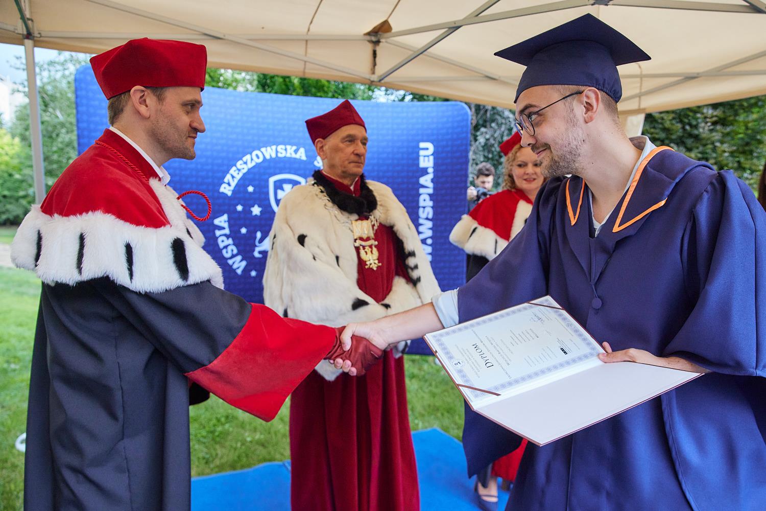 WSPiA Rzeszowska Szkoła Wyższa to najstarsza niepubliczna uczelnia na Podkarpaciu. W 25-letniej historii dyplom ukończenia studiów otrzymało blisko 50 tys. absolwentów. Do tego grona dołączyły kolejne osoby, które w ostatnim czasie obroniły swoją pracę dyplomową. W tegorocznej Graduacji uczestniczyli absolwenci WSPiA, którzy ukończyli studia na kierunku: „administracji” (studia I i II stopnia), „bezpieczeństwa wewnętrznego” (studia I i II stopnia), „zarządzania” (studia I stopnia) oraz jednolitych studiów magisterskich na kierunku „prawo”. W Graduacji oprócz absolwentów WSPiA i władz uczelni uczestniczyła także kadra naukowa uczelni oraz rodziny absolwentów. Dyplomy ukończenia studiów wręczali prof. Jerzy Posłuszny, Rektor WSPiA oraz Prorektorzy: dr Agata Furgała i dr Przemysław Niemczuk.