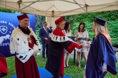 – Dziś w imieniu całej społeczności akademickiej, władz uczelni, kadry naukowo-dydaktycznej gratuluję Państwu ukończenia studiów i osiągniętego przez Państwa ogromnego sukcesu. Sukcesu okupionego wyrzeczeniami, wymagającego spędzenia wielu godzina na wykładach, ćwiczeniach, warsztatach i nad książkami. Pamiętajcie, że wbrew pojawiającym się opiniom, studia to czas, w którym osiągamy bardzo wiele. Rozpoczynając swoją karierę zawodową, zobaczycie, jak przydatna jest zdobyta wiedza i praktyka, kontakty, umiejętność pracy w grupie. Studia udoskonaliły Państwa warsztat intelektualny, otwierając Was na nowe zjawiska i otaczająca rzeczywistość. To pozwoli łatwiej pokonywać trudności, które spotkacie w życiu. To wszystko będzie procentować. Bądźcie Państwo dumni z Waszego sukcesu – gratulował absolwentom prof. Jerzy Posłuszny.