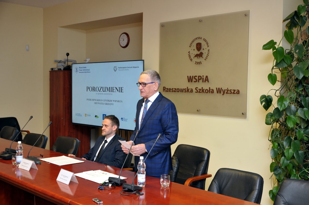 Podpisanie porozumienia to początek działalności PCWOU. Jak zaznaczył prof. Jerzy Posłuszny, Rektor WSPiA jest to bardzo ważne wydarzenie, które rozpoczyna niezwykłe przedsięwzięcie. – Razem z dzisiejszymi sygnatariuszami rozpoczynamy duże przedsięwzięcie non profit. Widzimy jednak duże zainteresowanie kolejnych instytucji nie tylko z Rzeszowa, ale całego województwa. Od miesiąca w różny sposób Polacy pomagają i pokazując ogromne serce dla uchodźców. Jednak przed nami kolejny etap, w którym musimy naszą pomoc sprofesjonalizować i zorganizować. Teraz musimy rozpocząć świadczenie systemowej pomocy. I Właśnie uporządkowaniu wszystkich spraw związanych z pomocą uchodźcom ma służyć utworzone Podkarpackie Centrum Wsparcia Obywateli Ukrainy – powiedział prof. Jerzy Posłuszny, Rektor WSPiA Rzeszowskiej Szkoły Wyższej.