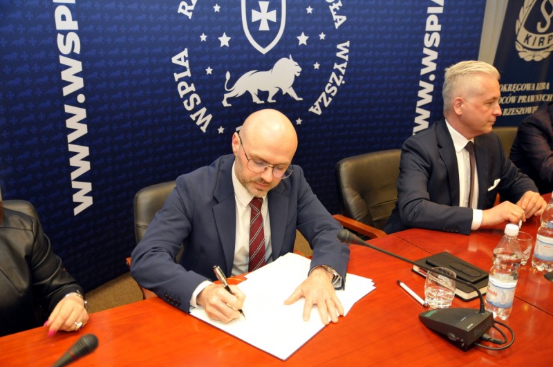 Tworząc Podkarpackie Centrum Wsparcia Obywateli Ukrainy (PCWOU) WSPiA rozpoczęło ścisłą współpracę z 6 urzędami i instytucjami, z którymi będzie pomagać uchodźcom z ogarniętej wojną Ukrainy. W czwartek 31 marca 2022 r. porozumienie w sprawie współpracy podpisali: