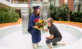 W minioną sobotę 23 lipca 2016 r. ponad 200 absolwentów WSPiA odebrało dyplomy ukończenia studiów. Dla jednej z absolwentek była to jednak wyjątkowa Graduacja. Po odebraniu dyplomu jej narzeczony oświadczył się w fontannie w patio naszej uczelni.