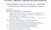 Procesy zarządzania kryzysowego to temat najbliższego posiedzenia Podkarpackiego Forum Myśli o Bezpieczeństwie w WSPiA. W spotkaniu w najbliższy wtorek 16 czerwca 2015 r. uczestniczyć będzie kilkudziesięciu naukowców oraz przedstawicieli formacji mundurowych i instytucji odpowiedzialnych za zarządzanie kryzysowe.