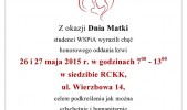 Studenci Wyższej Szkoły Prawa i Administracji zachęcają do świętowania Dnia Matki w nietypowy sposób. Przez dwa dni we wtorek i środę (26 i 27 maja 2015 r.) osoby zainteresowane honorowym oddaniem krwi mogą zgłaszać się do siedziby Regionalnego Centrum Krwiodawstwa i Krwiolecznictwa przy ul. Wierzbowej 14 w Rzeszowie. Akcja trwać będzie codziennie w godzinach od 7:00 do 13:00.