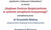 "Rządowe Centrum Bezpieczeństwa w systemie zarządzania kryzysowego" to temat kolejnego specjalnego wykładu dla studentów kierunku Bezpieczeństwo Wewnętrzne w WSPiA. W ramach „Spotkania z ciekawym człowiekiem” uczelnię odwiedzą dr Krzysztof Malesa oraz Grzegorz Świszcz z Rządowego Centrum Bezpieczeństwa. Spotkanie odbędzie się w piątek 10 kwietnia 2015 r. o godz. 10:00.