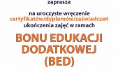 W czwartek 4 grudnia 2014 r. w Wyższej Szkole Prawa i Administracji odbędzie się uroczyste wręczenie certyfikatów, dyplomów oraz zaświadczeń ukończenia zajęć w ramach Bonu Edukacji Dodatkowej (BED). Na uroczystość dla studentów studia stacjonarnych, zapraszamy o godzinie 14:00 do klubu studenckiego „Zemsta Docenta”. Uroczystość dla studentów studia niestacjonarnych odbędzie się w sobotę 6 grudnia o godzinie 12.45.