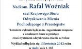 W najbliższy piątek (13.04) studenci kierunku „bezpieczeństwo wewnętrzne” w WSPiA wezmą udział w kolejnym spotkaniu z ciekawym człowiekiem. Wykład wygłosi mł. insp. Rafał Woźniak, szef Krajowego Biura Odzyskiwania Mienia Pochodzącego z Przestępstw. Spotkanie rozpocznie się w piątek (13.04) o godzinie 11:10 w auli Wyższej Szkoły Prawa i Administracji (sala 118, budynek A).