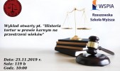 „Historia tortur w prawie karnym na przestrzeni wieków” to temat wykładu otwartego organizowanego przez Koło Naukowe Karnistów „LEX”. Wykład przedstawi Piotr Mentel, student IV roku prawa, prezes Koła Naukowego „LEX”. Spotkanie organizowane jest w ramach Praktycznego Poniedziałku w WSPiA, odbędzie się 25 listopada 2019 r. o godzinie 10:00.