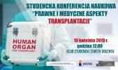 „Prawne i medyczne aspekty transplantacji” to temat najbliższej studenckiej konferencji organizowanej przez studentów WSPiA Rzeszowskiej Szkoły Wyższej. W dyskusji oprócz studentów naszej Uczelni uczestniczyć będą także studenci kierunku lekarskiego Uniwersytetu Rzeszowskiego. Konferencja odbędzie się w najbliższą środę 10 kwietnia 2019 r. o godzinie 12:00.