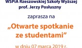 Prof. Jerzy Posłuszny, Rektor WSPiA Rzeszowskiej Szkoły Wyższej zaprasza wszystkich studentów na otwarte spotkanie informacyjne dotyczące rozpoczynającego się semestru letniego. Spotkanie odbędzie się w najbliższy czwartek 7 marca 2019 r. o godzinie 13:00. Studentów zapraszamy do Sali 23 (parter, budynek A).