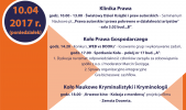 10 kwietnia 2017 r. zapraszamy na kolejny Praktyczny Poniedziałek w WSPiA Rzeszowskiej Szkole Wyższej. Tym razem na wszystkich studentów czekać będą m.in.: warsztaty pt. „Praca w wakacje – legalnie i bezpiecznie”, seminaria i konferencje naukowe, konkurs WEB vs BOOKs, Spotkania Kół Naukowych oraz Krwawe kino, czyli Kolacja z mordercą. Do udziału we wszystkich zajęciach zapraszamy już od godziny 10:00.