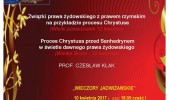 Związki prawa żydowskiego z prawem rzymskim na przykładzie procesu Chrystusa i Proces Chrystusa przed Sanhedrynem w świetle dawnego prawa żydowskiego. To tematy kolejnych wykładów prof. Czesław Kłak, Dziekan - Dyrektor Kolegium Prawa WSPiA Rzeszowskiej Szkoły Wyższej podczas Wieczorów Jadwiżańskich w Rzeszowie. Wykłady odbędą się w poniedziałek (10.04) oraz w środę (12.04) o godzinie 18:00 w Międzynarodowym Studenckim Centrum Kultury Chrześcijańskiej (Kościół Akademicki).