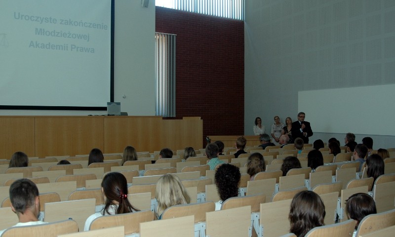 Prawie 40 uczniów szkół ponadgimnazjalnych z Podkarpacia odebrało (13.06) w WSPiA dyplomy ukończenia Młodzieżowej Akademii Prawa. W czasie uroczystości w Sali Rozpraw (Collegium Iuridicum) najbardziej aktywni słuchacze Młodzieżowej Akademii Prawa otrzymali dodatkowo wyróżnienia i upominki od Wyższej Szkoły Prawa i Administracji.