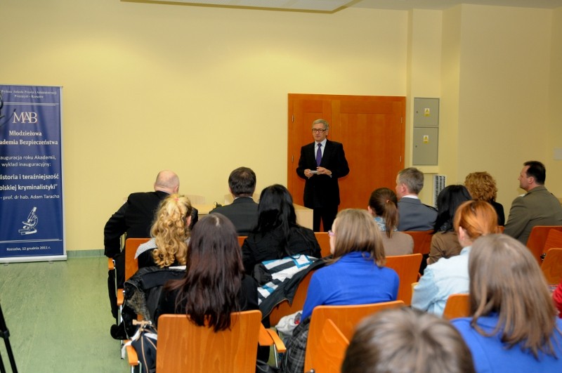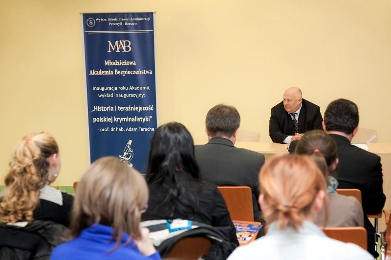 Wykład prof. Adama Tarach zainaugurował (12.12) działalność Młodzieżowej Akademii Bezpieczeństwa działającej przy WSPiA. To kolejna po Młodzieżowej Akademii Prawa inicjatywa WSPiA mająca przygotować uczniów szkół ponadgimnazjalnych do studiowania na wybranych kierunkach. W czasie zajęć ponad 100 młodych ludzi mogło poznać historię i teraźniejszość Polskiej kryminalistyki.