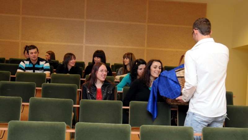 Z okazji Dnia Kobiet Samorząd Studencki WSPiA uhonorował wszystkie Panie pracujące i studiujące w uczelni. Oprócz życzeń były również słodkości, które rozdawali Tomasz Węglarz oraz Patryk Ochalski, przedstawiciele samorządu studenckiego. Dla wszystkich Pań przygotowano łącznie ponad 8 kg cukierków i 150 batoników.
