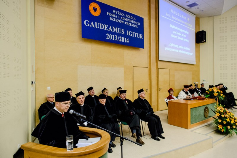 W sobotę, 19 października 2013 roku Wyższa Szkoła Prawa i Administracji zainaugurowała nowy rok akademicki 2013/2014. Uroczystość rozpoczęła się o godzinie 12:00 w Auli Zamiejscowego Wydziału Prawa i Administracji w Rzeszowie przy ul. Cegielnianej 14. Była to wyjątkowa inauguracja, podczas której odbyła się pierwsza w historii WSPiA uroczysta promocja doktorska Pani Joanny Dziedzic, która jako pierwsza obroniła rozprawę doktorską w Wyższej Szkole Prawa i Administracji.