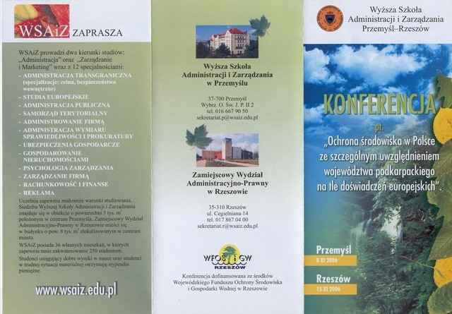 8 listopada 2006 r. odbyła się w siedzibie Uczelni w Przemyślu Konferencja Naukowa pt. "Ochrona środowiska w Polsce ze szczególnym uwzględnieniem województwa podkarpackiego na tle doświadczeń europejskich"