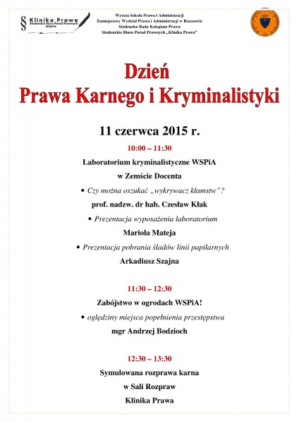 Program Dnia Prawa Karnego i Kryminalistyki - 11 czerwca 2015 r.