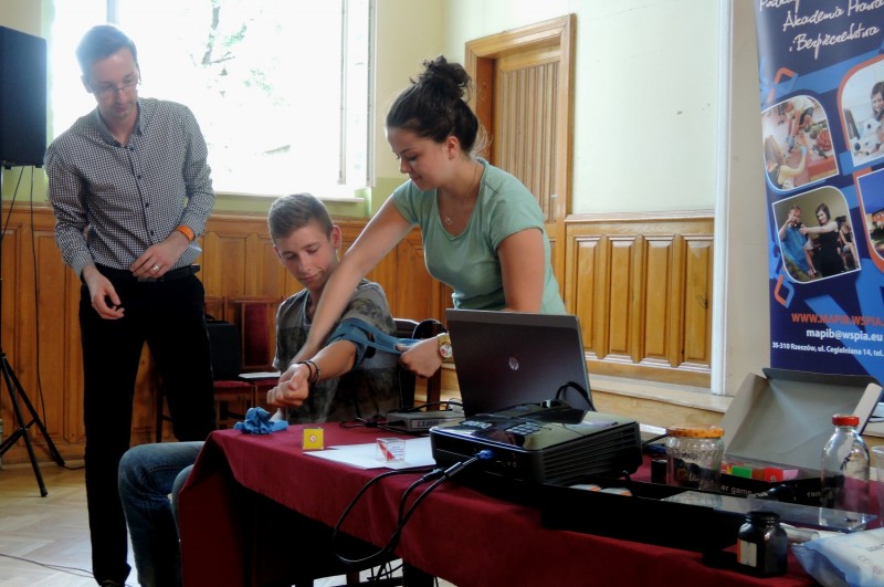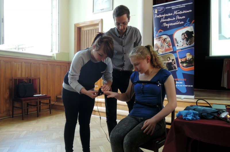 Ostatnie – przed wakacjami – zajęcia Podkarpackiej Młodzieżowej Akademii Prawa i Bezpieczeństwa odbyły się w dniach od 16 do 19 czerwca w Krośnie, Jaśle, Przemyślu, Dębicy, Łańcucie i Rzeszowie. Podczas spotkania uczniowie szkół ponadgimnazjalnych zostali wprowadzeni do problematyki zabezpieczania śladów kryminalistycznych. Poznali sposoby wykrywania sprawców przestępstw oraz metody daktyloskopowania. Najciekawszą częścią zajęć była prezentacja zasad działania wariografu, podczas której młodzież mogła zobaczyć, jak działa „wykrywacz kłamstw” oraz jaką wartość dowodową mają badania wykonane za pomocą tego urządzenia. Zajęcia zorganizowane zostały z wykorzystaniem specjalistycznych waliz śledczych i wariografu, znajdujących się na wyposażeniu Laboratorium Kryminalistycznego WSPiA.