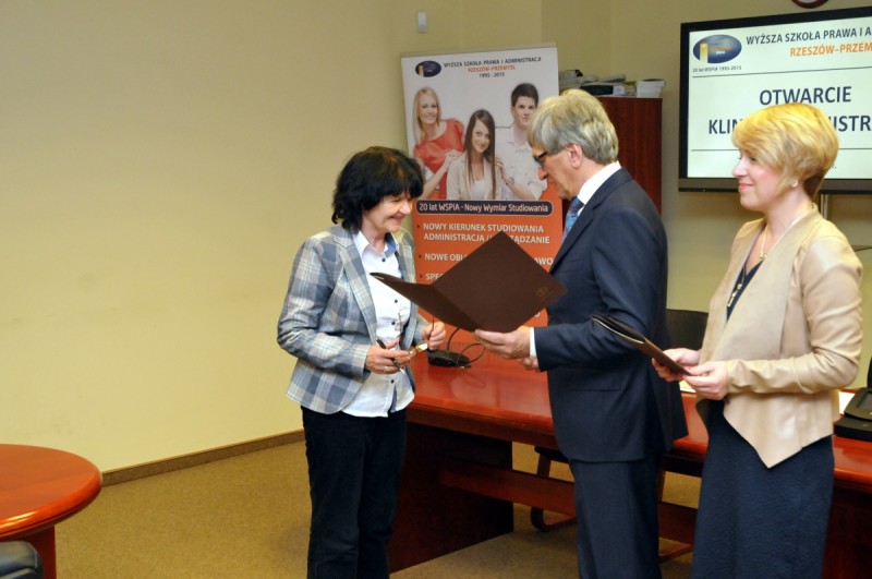 Dodaje, że zasadniczym celem działania Kliniki Administracji będzie bezpłatne udzielanie porad prawnych osobom niezamożnym. – Klinika pozwoli naszym studentom pogłębić wiedzę teoretyczną oraz umiejętności praktycznych z dziedziny nauk prawnych i nauk o administracji. Ma także kształtować prawidłowe postawy etyczne niezbędne w przyszłej pracy zawodowej Absolwentów WSPiA. Klinika Administracji to także przedsięwzięcie, które będzie podnosiło świadomość prawną naszego społeczeństwa. Stworzy płaszczyznę wymiany poglądów i czerpania z doświadczeń praktyki stosowania prawa przez organy administracji publicznej – wylicza dr Małgorzata Gajda–Durlik.