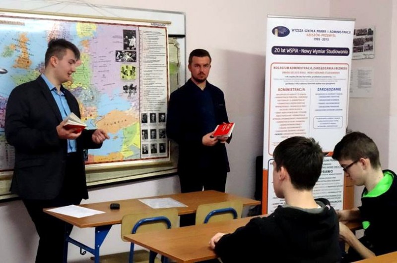 Lekcje, które odbyły się w grudniu 2015 r. w Liceum Ogólnokształcącym w Ropczycach oraz VI Liceum Ogólnokształcącym w Rzeszowie to kolejne przedsięwzięcie zorganizowane przez studentów WSPiA. Przedstawiciele Koła Naukowego Karnistów „LEX” ze swoimi wykładami odwiedzili już m.in. VIII, VI i III LO w Rzeszowie oraz Liceum Sióstr Prezentek im. Jana Pawła II w Rzeszowie.