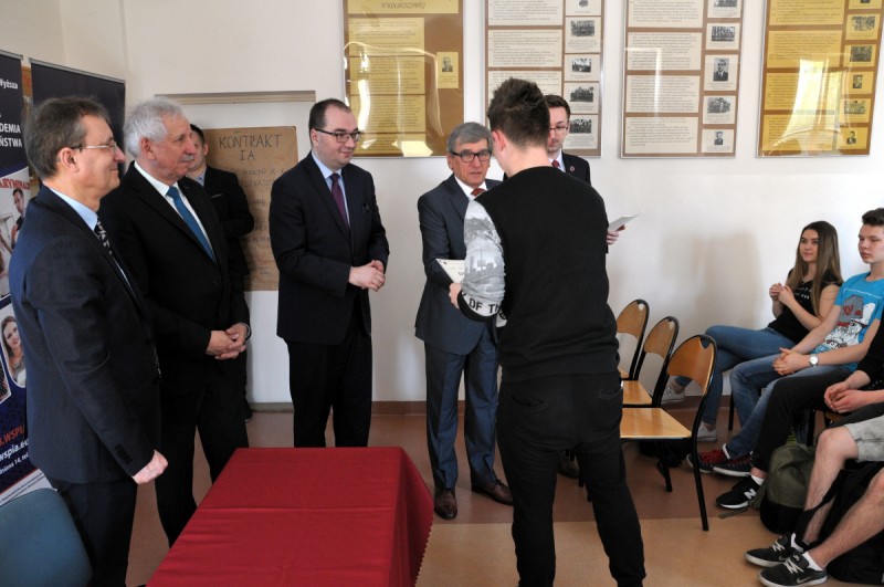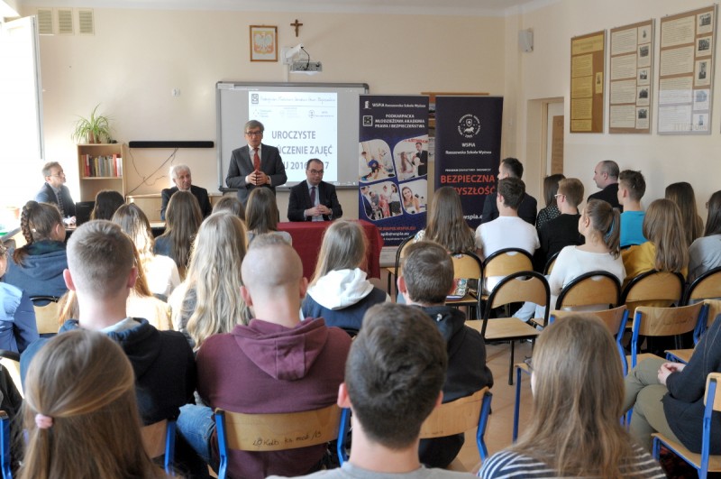 Dyplomy ukończenia Akademii wręczył uczniom prof. Jerzy Posłuszny, Rektor WSPiA Rzeszowskiej Szkoły Wyższej. – Bardzo cieszę się, że Akademia spotkała się z tak ogromnym zainteresowaniem uczniów zarówno z Kolbuszowej, jak i Stalowej Woli. Wybraliśmy problematykę prawa i bezpieczeństwa, ponieważ są to jedne z najważniejszych wartości w życiu każdego z nas. Na młodych ludzi czeka wiele zagrożeń. Mam nadzieję, że zaproponowane przez nas zajęcia poszerzyły wasze horyzonty, otworzyły oczy na nowe możliwości i pozwoliły jeszcze lepiej zrozumieć otaczający was świat. Gratuluje wszystkim uczniom oraz nauczycielom, dyrektorom i starostom, którzy byli życzliwi dla naszej inicjatywy i wspomagali nas w organizowaniu kolejnych zajęć – mówił podczas uroczystości prof. Jerzy Posłuszny.
