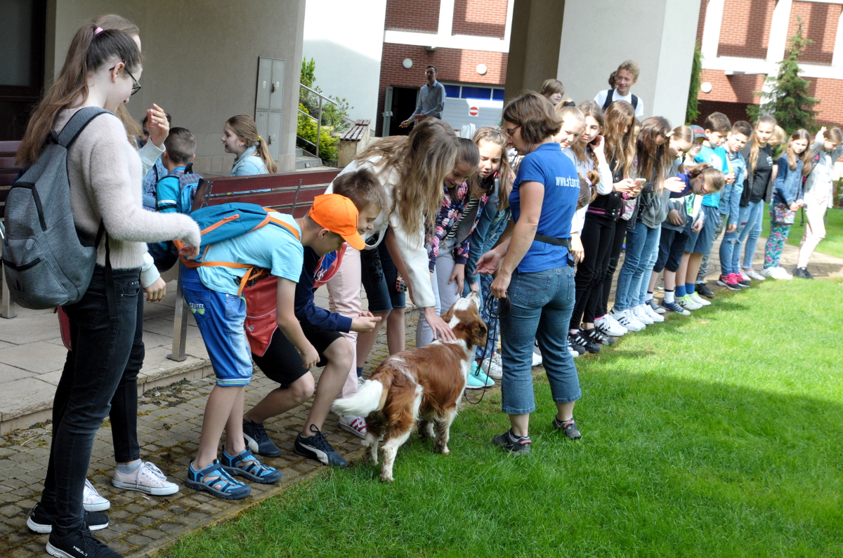 Podczas spotkania w Ogrodach Wypoczynkowych WSPiA uczniowie mogli zobaczyć pokaz wyszkolenia psa ratowniczego. Gościem spotkania była. Barbara Maciejewska, ratownik STORAT z Rzeszowa oraz jej pies o imieniu Shot. Zaprezentowane zostały zasady szkolenia i sposoby poszukiwania osoby zaginionej. Dzieci mogły dowiedzieć się, jak wygląda praca zespołu ratowniczego na miejscu np. katastrofy. Podczas spotkania było wiele pytań m.in. o dietę, wiek i długość szkolenia psa ratownika.