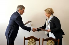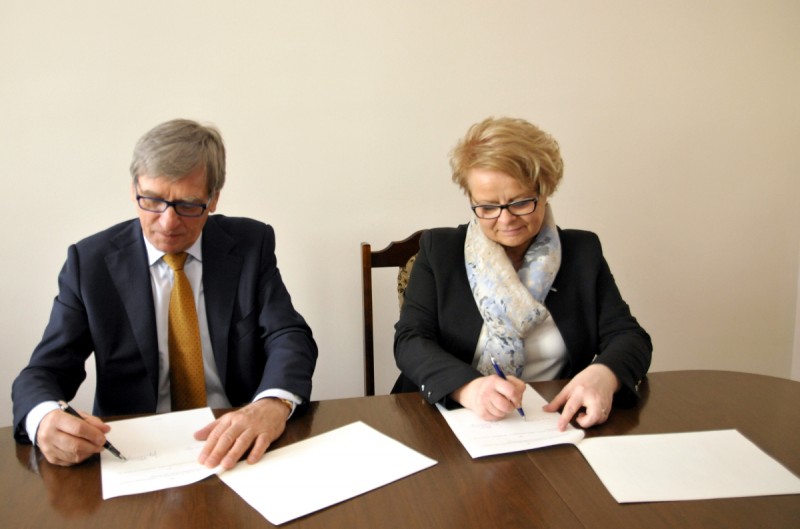 Umowę, dzięki której w Zespole Szkół nr 1 w Łańcucie utworzona została klasa akademicka działająca pod patronatem WSPiA Rzeszowskiej Szkoły Wyższej, podpisali prof. Jerzy Posłuszny, Rektor Uczelni oraz Małgorzata Kupis, Dyrektor szkoły. W uroczystości uczestniczyli również Barbara Pilawa-Kraus – Wicestarosta Łańcucki, prof. Czesław Kłak, Dziekan-Dyrektor Kolegium Prawa i Bezpieczeństwa WSPiA oraz Mariusz Duliban, opiekun nowo utworzonej klasy patronackiej.