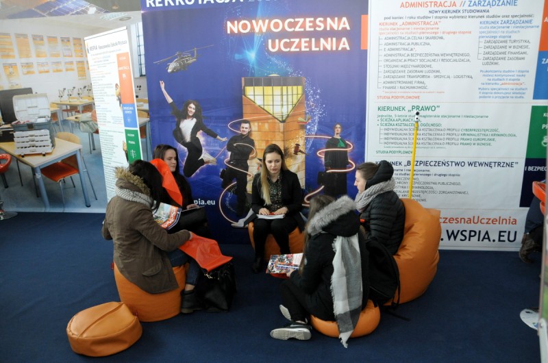 Podczas targów studenci opowiadali maturzystom o tym, jak wyglądają zajęcia praktyczne w WSPiA, jakie są warunki studiowania oraz jakie darmowe kursy i zajęcia oferuje uczelnia. Dodatkowo można było poznać zasady przyjęć na studia i przyznawania stypendiów oraz miejsc w Wielomieszkaniowym Domu Studenckim.