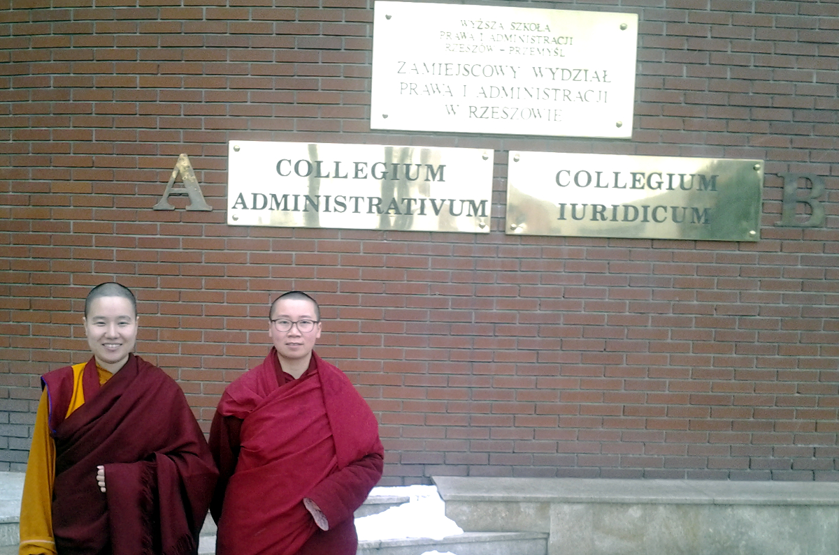 Panie Yuan Wang i Yuan Xun były kolejnymi Buddyjskimi Mnichami, którzy odwiedzili WSPiA Rzeszowską Szkołę Wyższą. Wcześnie zew studentami Uczelni spotkał się m.in. Lama Gursam, buddyjski duchowny na co dzień mieszkającym w USA oraz Desi Rinpoche, były sekretarz Dalaj Lamy, wysoki autorytetu buddyjskiej tradycji Gelugpa.