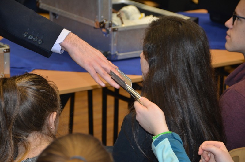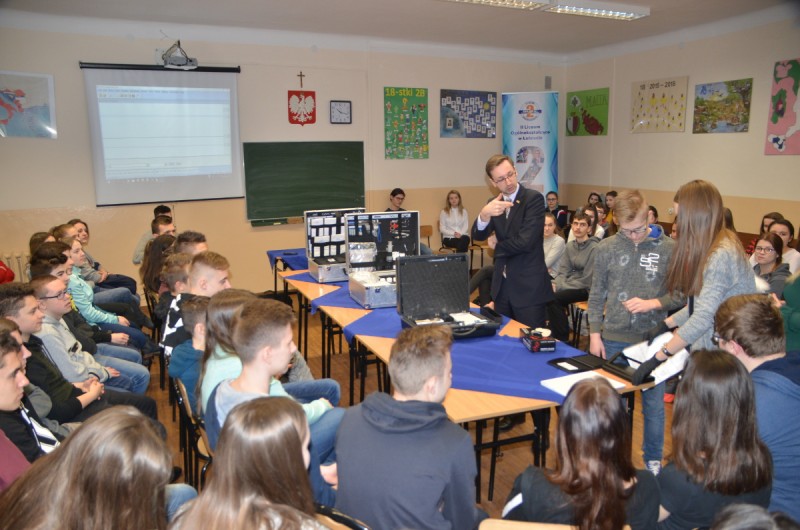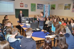 – To były jak zawsze bardzo fajne i ciekawe zajęcia. Tematem spotkania było omówienie technik śledczych, m.in. daktyloskopii, traseologii, śladów biologicznych oraz śladów pamięciowych. Objaśnienie tych zagadnień zostało poparte pokazem. Mieliśmy w ty też mały udział. Jako słuchacze Podkarpackiej Akademii Prawa i Bezpieczeństwa poznaliśmy już różne techniki śledcze. Teraz mogliśmy zaprezentować swoją wiedzę i umiejętności uczniom z gimnazjum. Na zakończenie zajęć przeprowadzone zostało pokazowe badanie poligrafem. Dzięki temu mogliśmy zobaczyć na żywo jak wygląda takie badanie – mówi Karolina Ilasz z II LO.