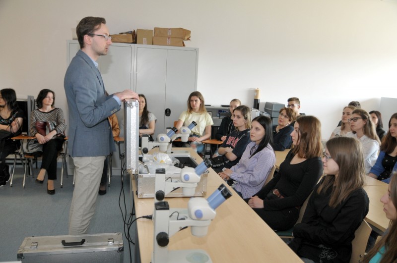 Dedykowana lekcja kryminalistki zorganizowana została na prośbę nauczycieli z Zespołu Szkół Ekonomicznych w Mielcu. Jak tłumaczą, pomysł urodził się podczas Targów Edukacyjnych w Jasionce. – Jednym z elementów Targów, które odbyły się kilka tygodni temu były różne spotkania i wykłady. Trafiliśmy wtedy na „Lekcje współczesnej kryminalistyki” przygotowaną przez WSPiA Rzeszowską Szkołę Wyższą. To był bardzo ciekawy wykład. Ponieważ w naszej szkole prowadzimy klasę o profilu ogólno-policyjnym, postanowiliśmy zwrócić się z prośbą do Pana Rektora o możliwość zorganizowania dla naszych uczniów takich warsztatów – tłumaczą nauczyciele z ZSE w Mielcu.