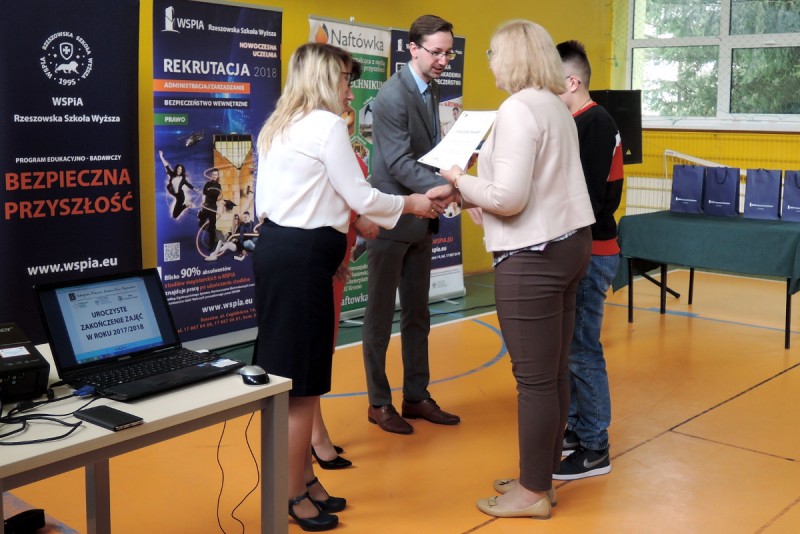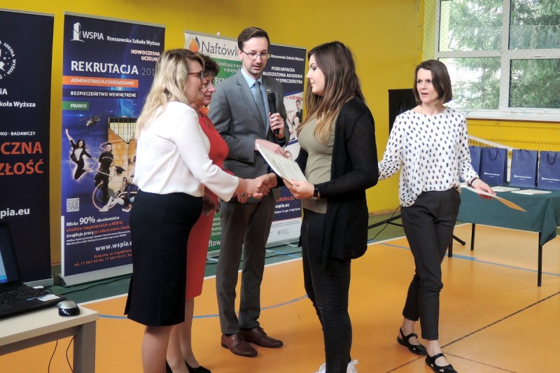 Dyplomy ukończenia III edycji Podkarpackiej Młodzieżowej Akademii Prawa i Bezpieczeństwa wręczyła dr Bożena Sowa, Prorektor WSPiA Rzeszowskiej Szkoły Wyższej oraz mgr Arkadiusz Szajna, zastępca Dziekana-Dyrektora Kolegium Prawa i Bezpieczeństwa WSPiA.