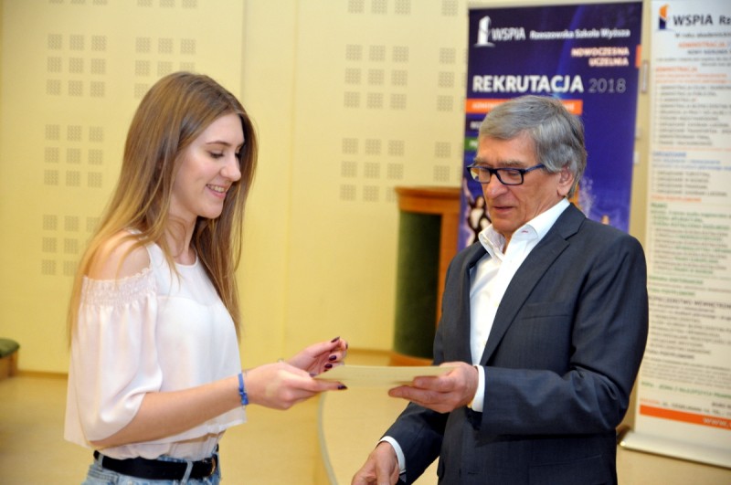 W Rzeszowie dyplomy wręczył uczniom prof. Jerzy Posłuszny, Rektor WSPiA Rzeszowskiej Szkoły Wyższej. – Bardzo się cieszę, że byliście zainteresowani zajęciami w ramach Podkarpackiej Młodzieżowej Akademii Prawa i Bezpieczeństwa. W naszej działalności współpracujemy ze szkołami na różnych płaszczyznach. Jednak najważniejsze dla nas – jako Uczelni – jest chronienie uczniów i wskazywaniem im zagrożeń, które czyhają na każdym kroku. Taki cel przyświecał nam, kiedy tworzyliśmy Akademię. Mam nadzieję, że zaproponowane przez WSPiA zajęcia otworzyła Wam oczy na ważne kwestie związane z cyberbezpieczeństwem, szeroko rozumianym bezpieczeństwem obywateli, prawem czy wreszcie kryminalistyką i kryminologią. Mam także nadzieję, że zajęcia, które zaproponowaliśmy były dla was atrakcyjne i skorzystaliście z nich jak najwięcej. Tworząc program Akademii, szczególną uwagę zwracaliśmy na to, aby spotykali się z Wami głównie praktycy. Akademia miała także na celu zainteresować i przekonać Was do studiów prawniczych oraz związanych z bezpieczeństwem – mówił podczas uroczystości prof. Jerzy Posłuszny, Rektor WSPiA Rzeszowskiej Szkoły Wyższej.